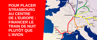 StrasbourgFinancer le train de nuit plutôt que l’avion pour placer Strasbourg au centre de l'EuropeEn décembre 2025, l’État supprimait les subventions aux deux seuls trains de nuit internationaux desservant la France pour “faire des économies”. Résultat : les trains de nuit Paris-Berlin et Paris-Vienne (qui desservait Strasbourg et Munich) disparaissent. La mobilisation citoyenne a obtenu une première victoire : le Paris-Berlin est repris par un opérateur privé… mais sans desserte de Strasbourg. La mobilisation continue pour relancer le Paris-Strasbourg-Munich-Vienne. Or, quelques mois plus tard, l’État subventionne une ligne aérienne Strasbourg–Munich, alors même qu’il existe aussi un train de jour reliant les deux villes en 4 heures. Pourtant le train de nuit apporte plus d’avantages que l’avion : 🚃🌛 Là où l’avion ne connecte que 2 villes en point-à-point, le train de nuit dessert de nombreuses villes sur son parcours, notamment des villes moyennes qui ne disposent pas d’aéroport ; cela permet de réduire le besoin de subventions en incluant des capitales européenne sur l'itinéraire ; il permet de voyager de centre-ville à centre-ville ; il optimise le temps de voyage grâce à un déplacement pendant notre sommeil ; grâce à une variété de conforts, il est inclusif de toutes les catégories sociales ; et il permet de parcourir de longues distances en diminuant de 95% les émissions de CO2 et de 80% la consommation d’énergie. ❌ Contrairement à ce qui est avancé, le train de nuit n’est pas “trop cher”. À subvention comparable, il transporte davantage de voyageurs, rend plus de services, et répond aux enjeux climatiques. ✅ La plaine d’Alsace et la vallée du Rhin sont un axe ferroviaire majeur : à 22 km de Strasbourg, plusieurs trains de nuit circulent déjà depuis Offenbourg vers Berlin, Hambourg, Prague et Amsterdam. Ces trains de nuit (en provenance de Zurich) desservent également Bâle, Freiburg, Baden Baden et Karlsruhe, ce qui peut permettre de desservir les villes de la plaine d’Alsace, surtout si les pouvoirs publics investissent pour les transports en commun transfrontaliers avec des correspondances optimisées : 25 trains par jour circulent déjà entre Strasbourg et Offenbourg, de 06h à minuit. (Notons que cette distance de 22 km n’est pas un désavantage face à l’avion : c’est d’ailleurs une distance courante entre les métropoles et leur aéroport. Par exemple l'aéroport de Munich est situé à 30km de la Ville. ) Nous demandons aux pouvoirs publics de : • relier Strasbourg à l’Europe via les trains de nuit plutôt que l’avion : réorienter les subventions permettra aux opérateurs de relancer ces trains. L'opérateur autrichien ÖBB dispose des trains nécessaires : une relance rapide est possible pour le train de nuit Paris–Strasbourg–Munich–Vienne. • réorienter les subventions aériennes aussi vers l'amélioration des transports en commun transfrontaliers Strasbourg - Offenbourg et des correspondances optimisées avec les trains de nuit existants vers Berlin, Hambourg, Prague et Amsterdam. De nombreuses destinations intermédiaires sont déjà desservies sur le parcours de ces 4 trains de nuit. • Les subventions pour la connexion européenne de Strasbourg alimentent également plusieurs autres lignes aériennes. Les réorienter permettra à l’avenir de relancer d'autres lignes de trains de nuit, par exemple Paris-Strasbourg-Prague. • D’autres lignes pourraient voir le jour. Par exemple, l'Allemagne a appelé les partenaires européens à mettre en service des trains de nuit Paris-Strasbourg-Budapest, Paris-Strasbourg-Ljubljana-Zagreb ainsi que Francfort-Karlsruhe-Milan-Gênes/Venise. • Pour compléter la desserte de Strasbourg, il est temps de mettre en œuvre les annonces de l’État pour relancer les trains de nuits nationaux sur les transversales (liaisons “région-région”) en validant la commande de trains de nuit neufs annoncée en 2025. Cela permettra d’équiper les trains de nuit depuis Metz, Nancy et Strasbourg vers Nice–Vintimille, vers Montpellier–Barcelone et vers Toulouse–Bordeaux. • au gouvernement Allemand et à l'UE, d’harmoniser la TVA entre les trains de nuit internationaux (actuellement à 7% en Allemagne) et l’avion (qui bénéficie d’une TVA à 0%). Équilibrer ainsi la concurrence aidera les trains de nuit à se déployer : ils se situent juste au seuil de flottaison économique. Strasbourg, capitale européenne, mérite des solutions d’avenir dédiées au plus grand nombre ! Il est temps de revoir les priorités, d’investir enfin dans les trains de nuit et de porter une véritable ambition ferroviaire pour Strasbourg, pour les villes moyennes et pour l’Europe. Signez la pétition pour un changement de cap et remettre le train au cœur des priorités. Pétition lancée par Oui au train de nuit et Rester sur Terre et soutenue par Back-on-Track et le Réseau Action Climat12 472 sur 15 000 SignaturesCréée par Oui au train de nuit et Rester sur Terre