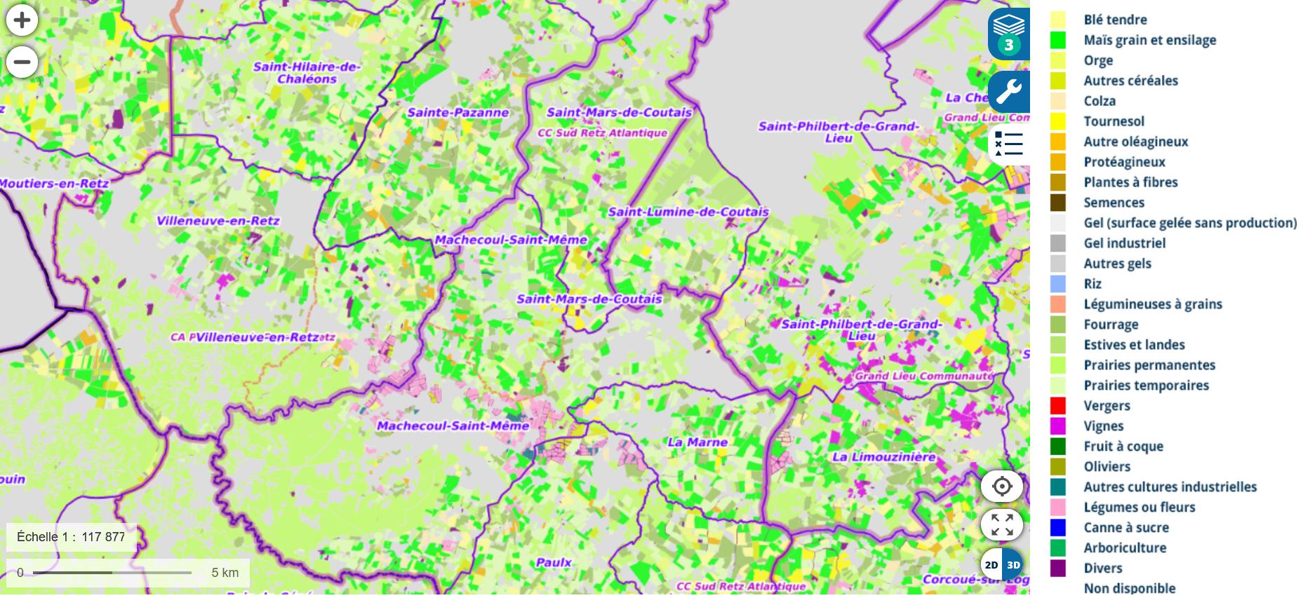 Le site de Géoportail permet de visualiser le type de cultures qui nous entoure.